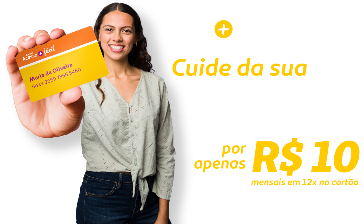 Você adquire o cartão, por apenas R$ 10,00 mensais, e já pode usufruir dos benefícios.